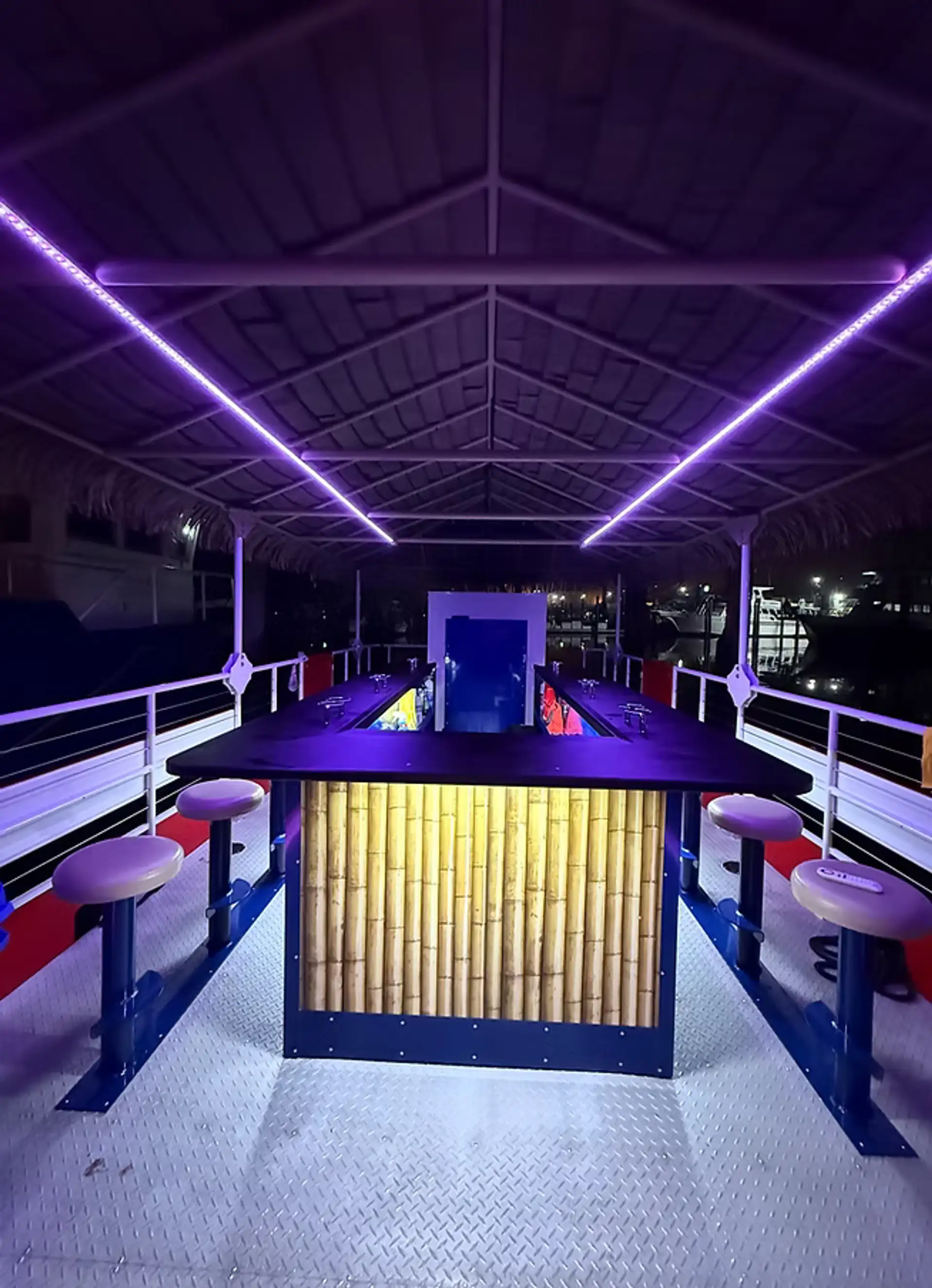 From the moment you step aboard, you're on island time. Our tiki boat features a full bar, Bluetooth sound system, comfortable seating, and plenty of shade. Whether you're cruising to the sandbar, dolphin watching, celebrating a birthday, or just enjoying a sunset with friends—we've got you covered.